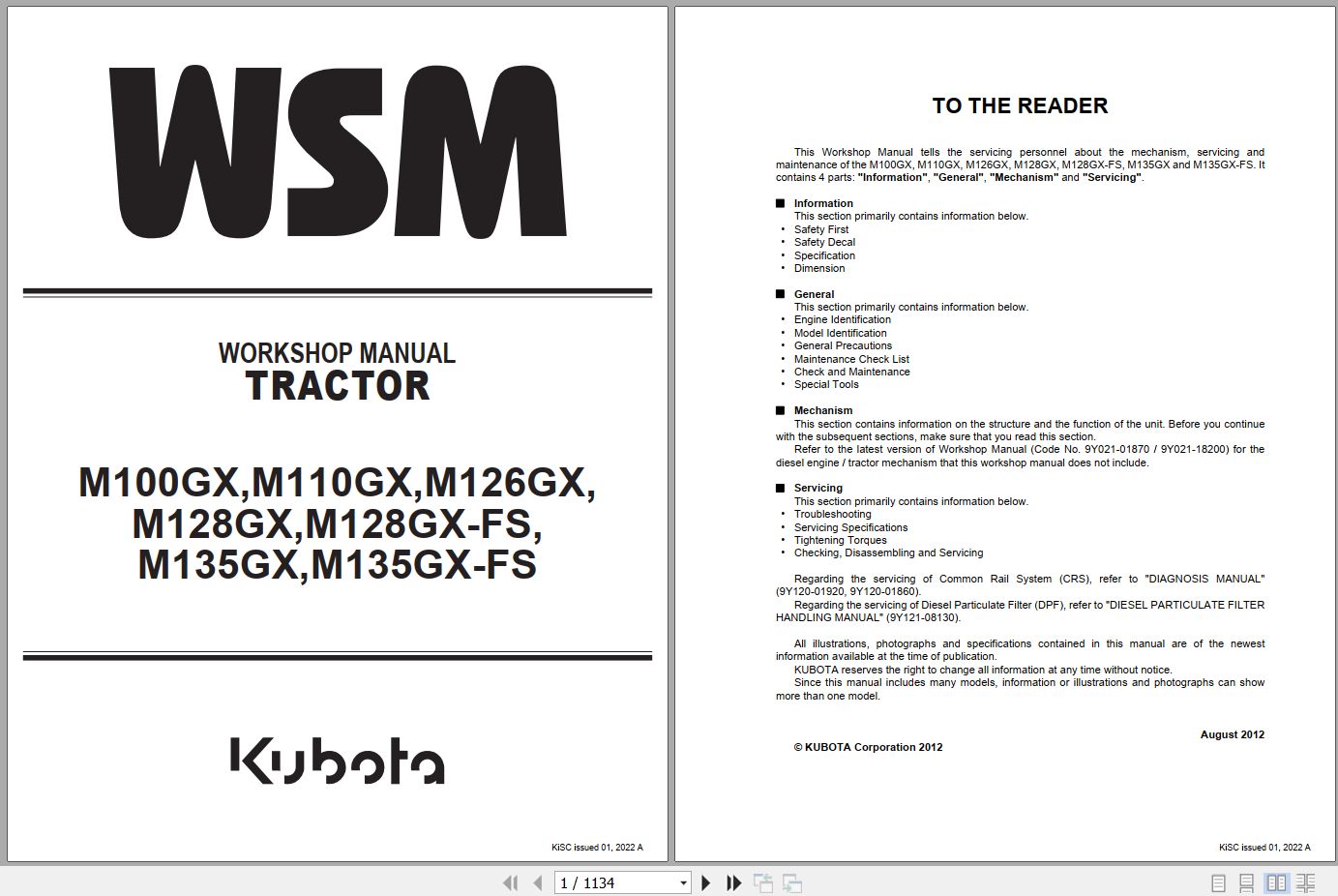 Machine Model: Kubota M100GX M110GX M126GX M128GX M128GX-FS M135GX M135GX-FS Tractor