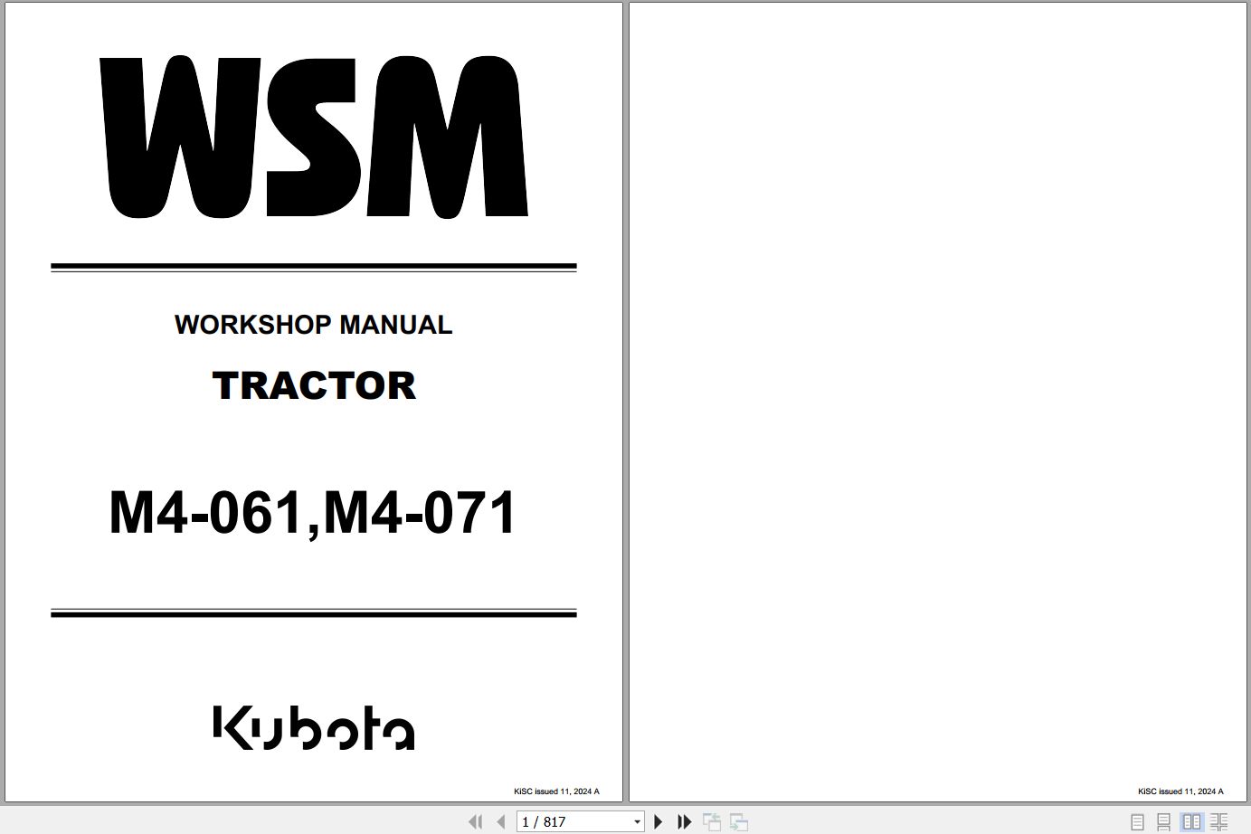 Kubota M4-061 M4-071 Workshop Manual 9Y111-19559 2024 PDF