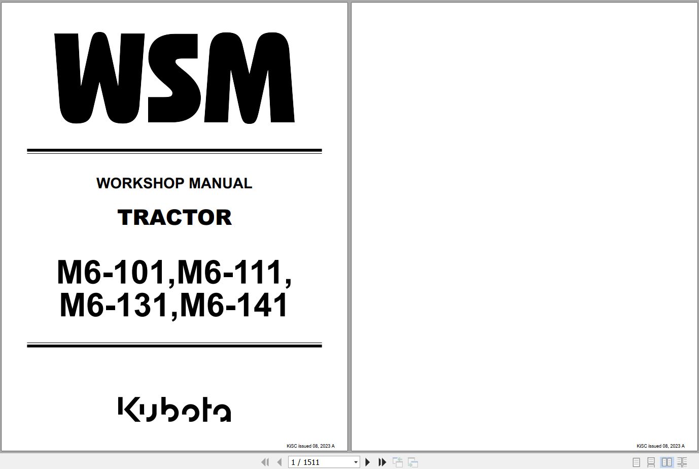 Kubota M6-101 M6-111 M6-131 M6-141 Workshop Manual 9Y111-26272 2023 PDF