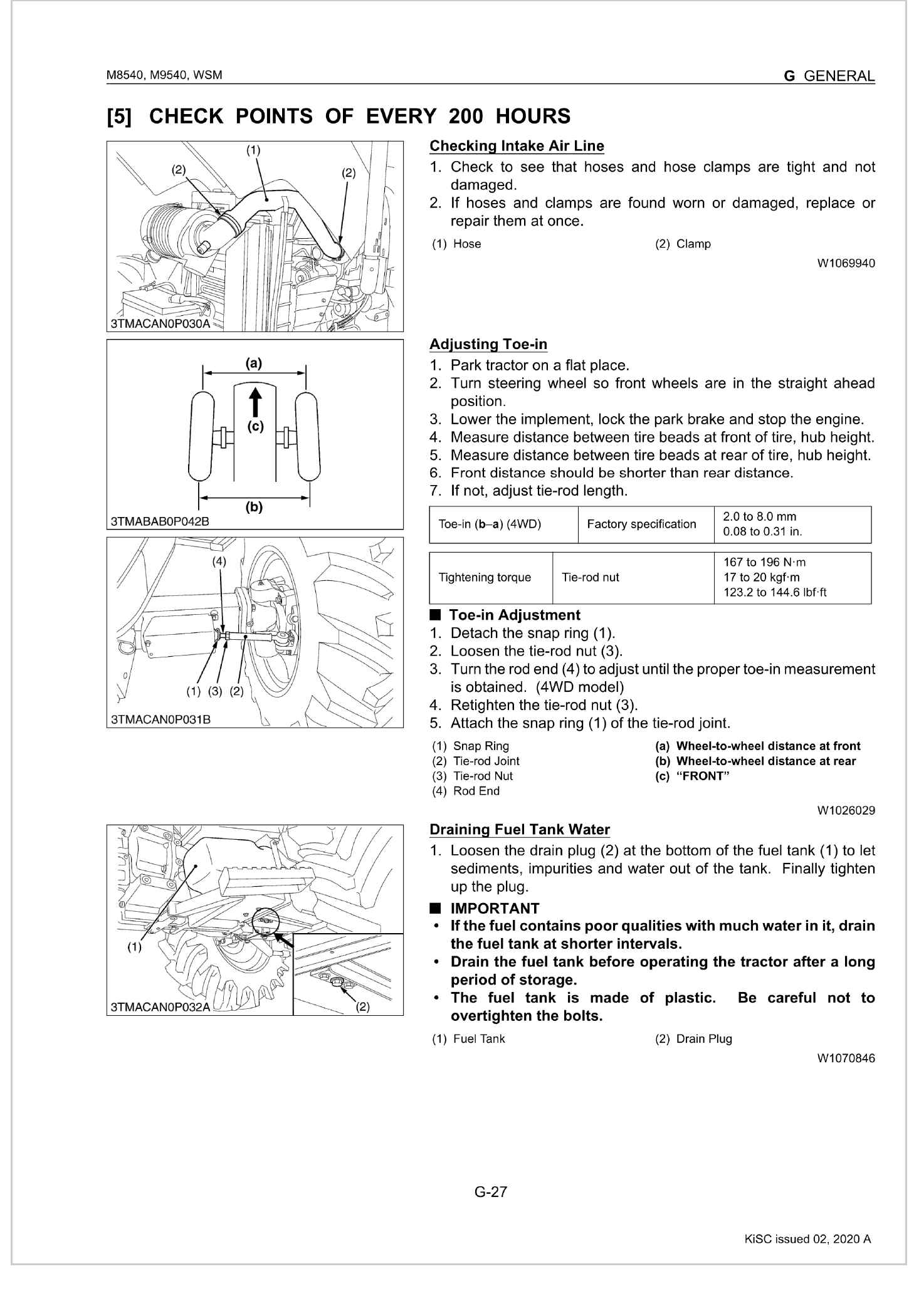 Information on the tractor identification, the general precautions, maintenance check list, check and maintenance and special tools are described.