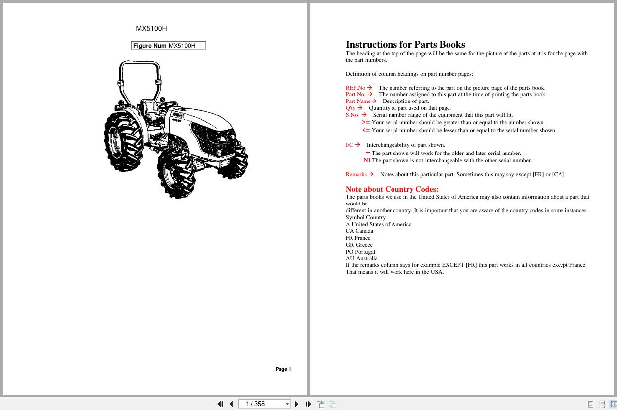 Kubota MX5100H Parts Catalog PDF