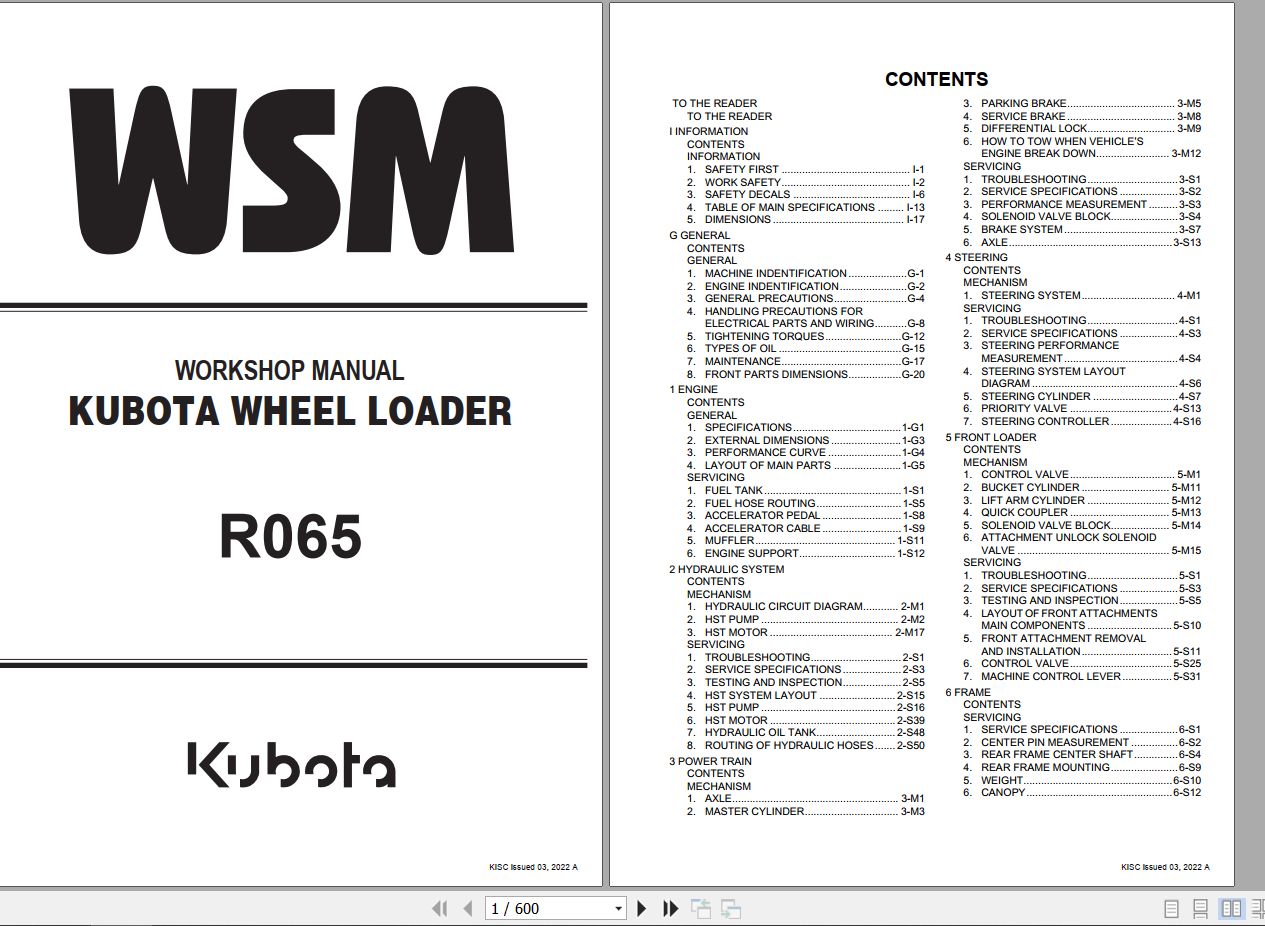 Kubota R065 Workshop Manual RY911-22626 2022 PDF