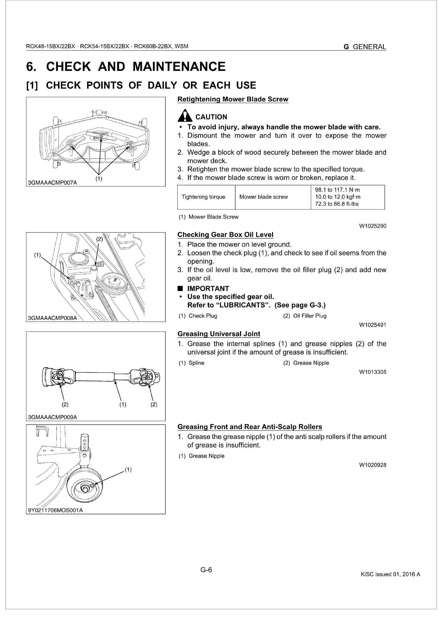 Under the heading “General” section comes general precautions, check and maintenance and special tools. Other section, there are troubleshooting, servicing specification lists, checking and adjusting, disassembling and assembling, and servicing which cover procedures, precautions, factory specifications and allowable limits.