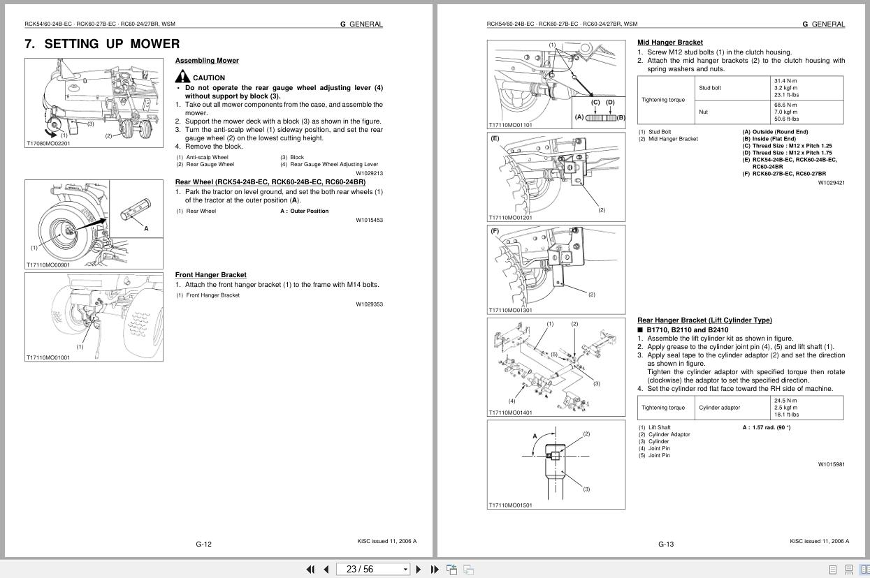 Kubota RCK54-24B-EC to RC60-27BR Workshop Manual 9Y011-17110 2006 PDF