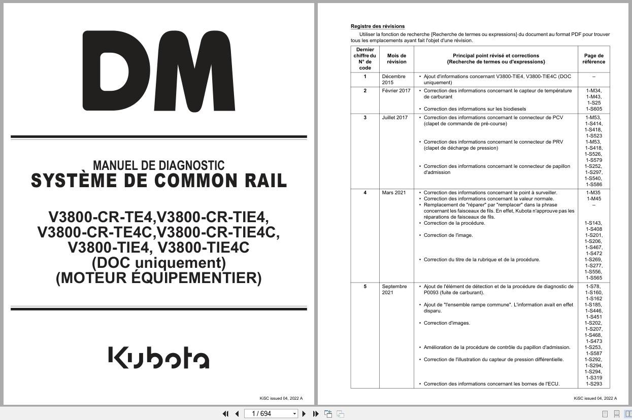 Kubota V3800-CR-TE4 to V3800-TIE4C Diagnostic Manual 9Y110-02906 FR