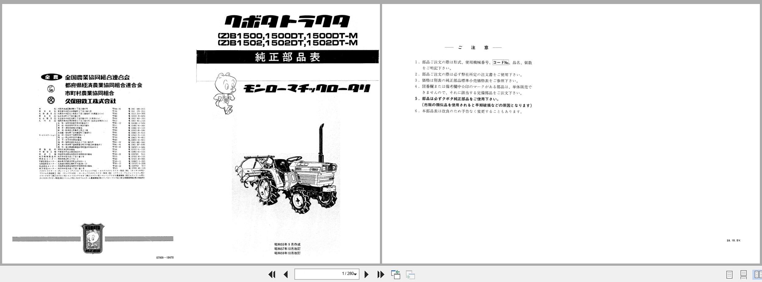 Kubota ZB1500 to B1502DT-M Parts Catalog JP PDF