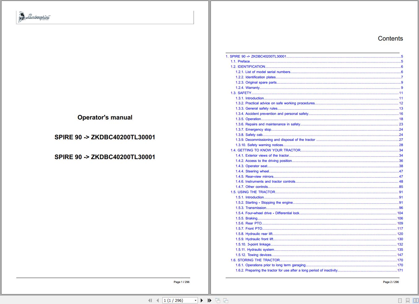 Lamborghini SPIRE 90 - ZKDBC40200TL30001 Operator Manual