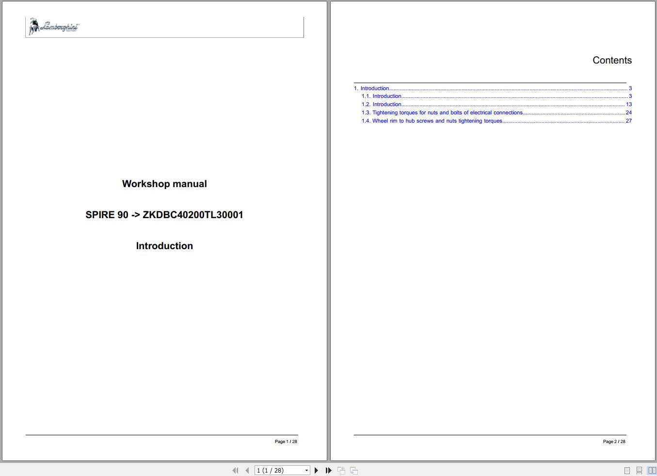 Lamborghini SPIRE 90 - ZKDBC40200TL30001 Workshop Manual and Diagrams