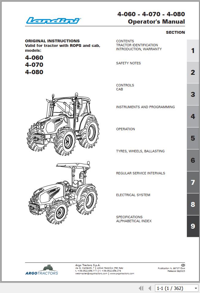 Machine Model: Landini 4-060 4-070 4-080 Tractor