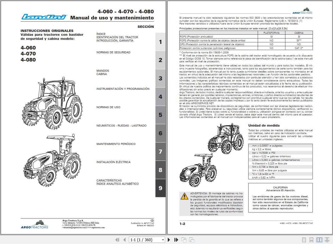Machine Model: Landini 4-060 4-070 4-080 Tractor