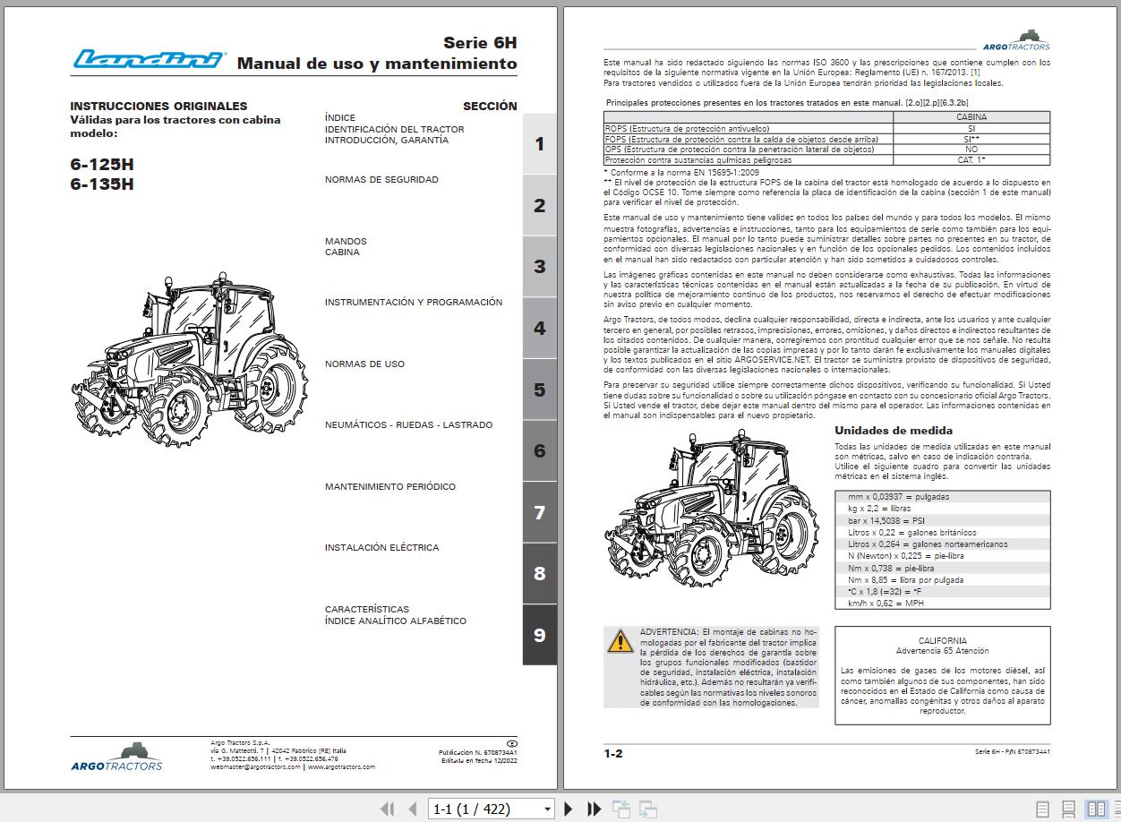 Landini 6-125H 6-135H Maintenance Operators Manual 6708734A1