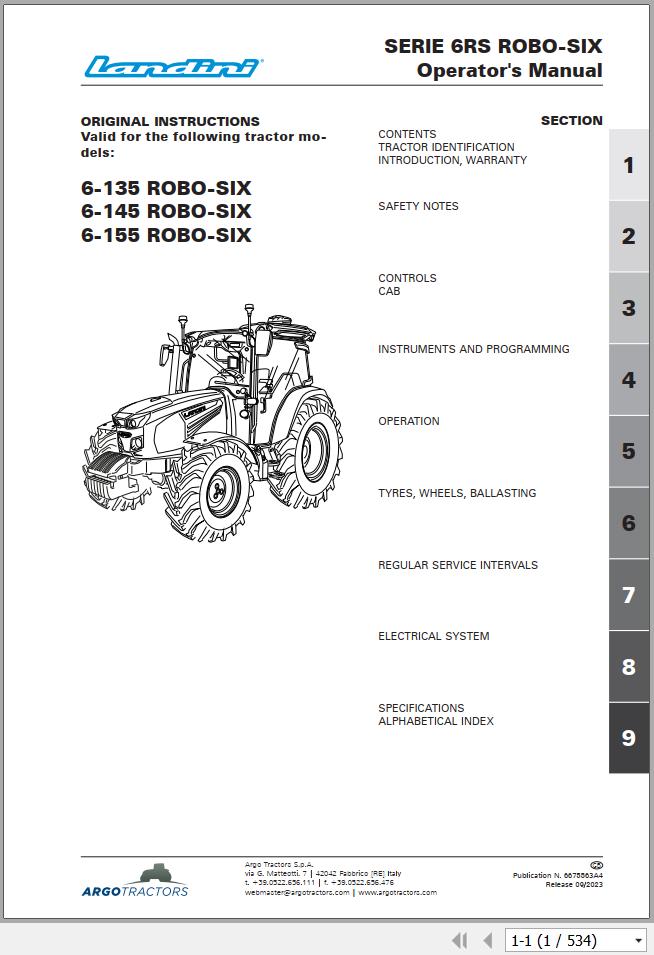 Machine Model: Landini Serie 6RS ROBO-SIX, 6-135 ROBO-SIX, 6-145 ROBO-SIX, 6-155 ROBO-SIX Tractor