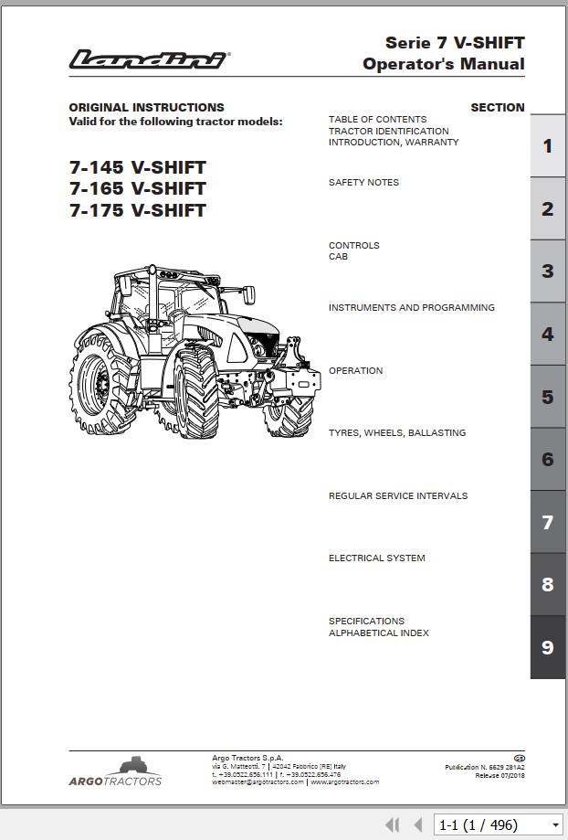 Machine Model: Landini 7 V-SHIFT Series, 7-145 V-SHIFT, 7-165 V-SHIFT, 7-175 V-SHIFT Tractor