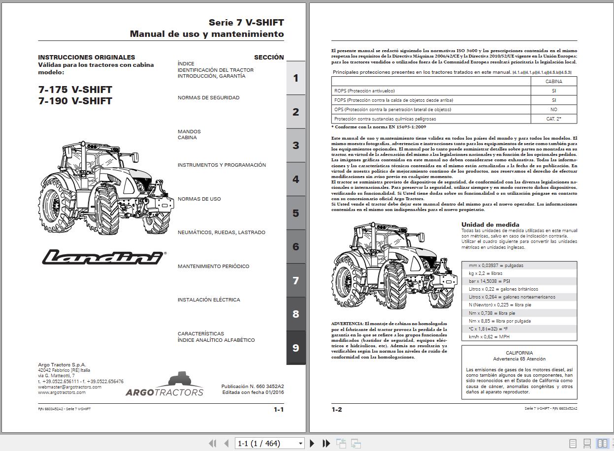 Landini 7-175 7-190 V-SHIFT Maintenance Operators Manual 6603452A2