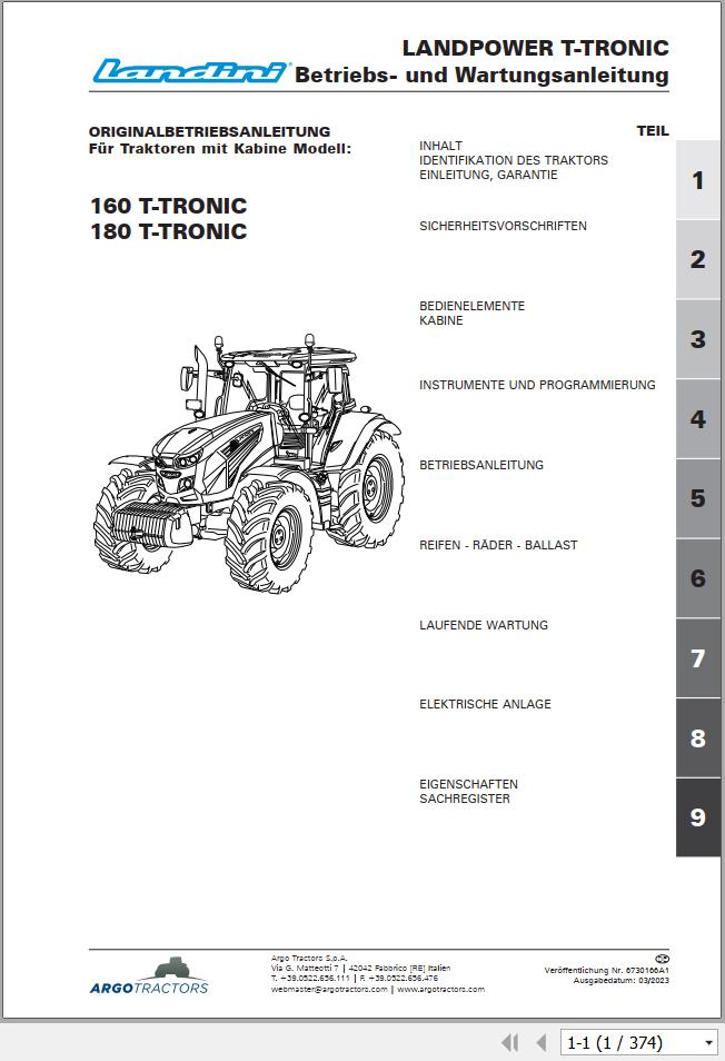 Machine Model: Landini Landpower T-TRONIC Series 160 T-TRONIC, 180 T-TRONIC Tractor