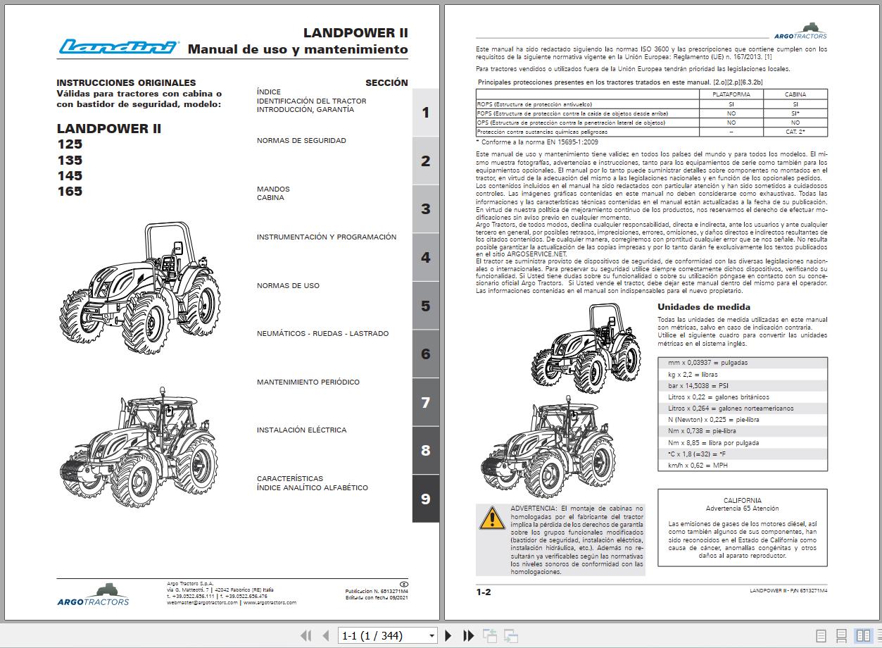 Landini LandPower II 125 135 145 165 Maintenance Operators Manual 6513271M4