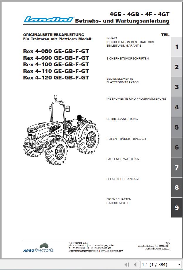 Landini Rex 4-080 4-090 4-100 4-110 4-120 GE GB F GT Maintenance Operator Manual 6695508A1