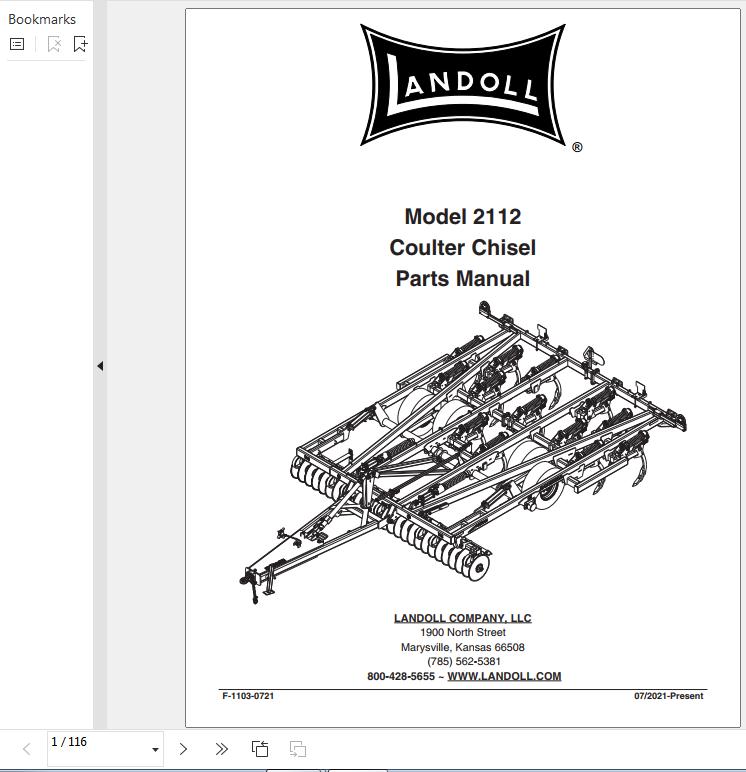 Landoll 2112 Coulter Chisel Parts Manual F-1103-0721