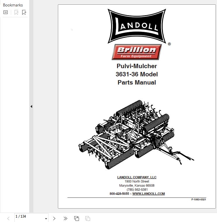 Landoll 3631-36 Pulvi-Mulcher Parts Manual F-1063-0321