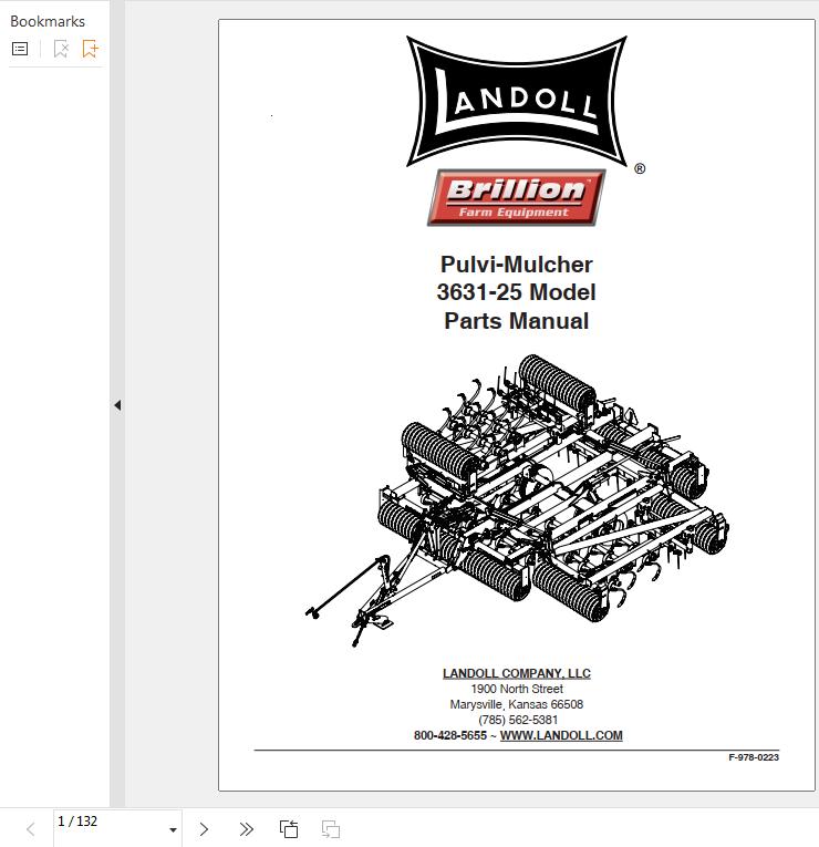 Landoll 3631-36 Pulvi-Mulcher Parts Manual F-978-0223