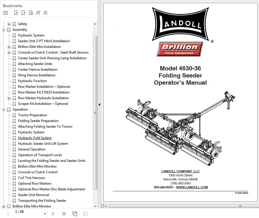 Landoll 4630-36 Folding Seeder Operator's Manual F-640-0222