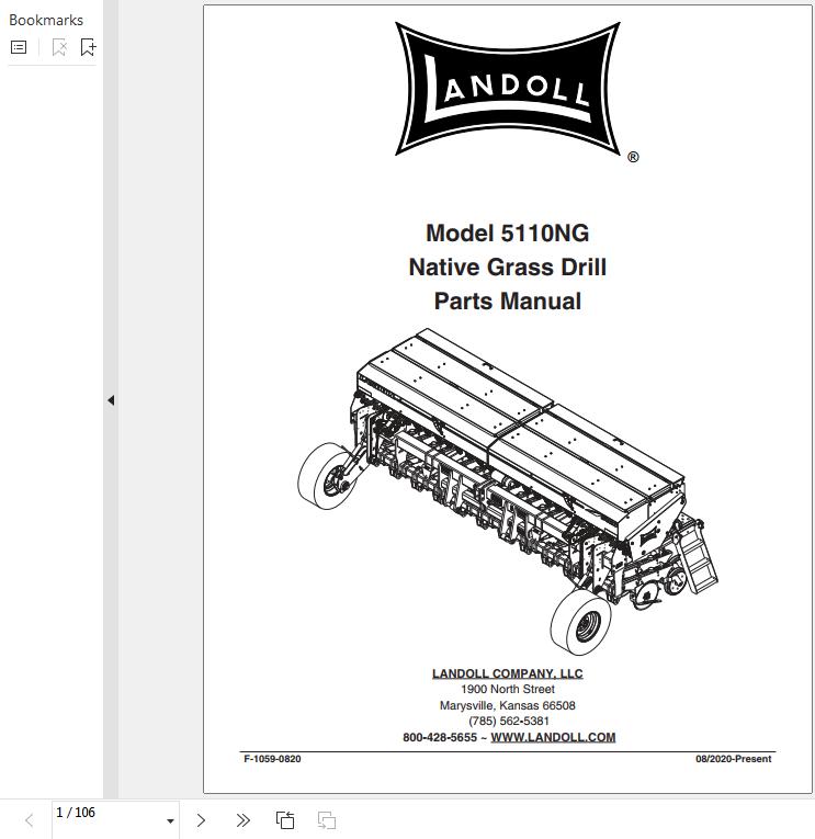 Landoll 5110NG Native Grass Drill Parts Manual F-1059-0820