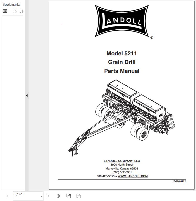 Landoll 5211 Grain Drill Parts Manual F-726-0122