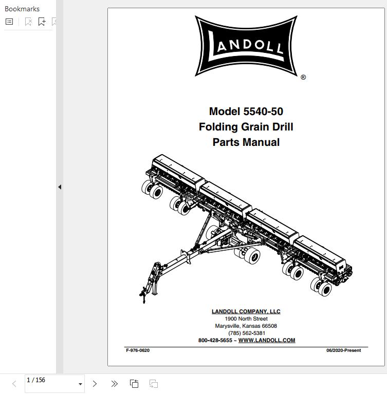Landoll 5540-50 Folding Grain Drill Parts Manual F-976-0620