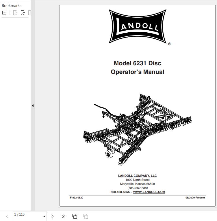 Landoll 6231 Tandem Disc Harrow Operator's Manual F-832-0520