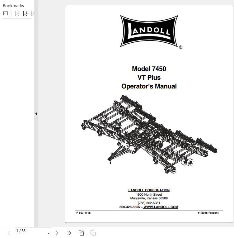 Landoll 67450 VT Plus Operator's Manual F-607-1118