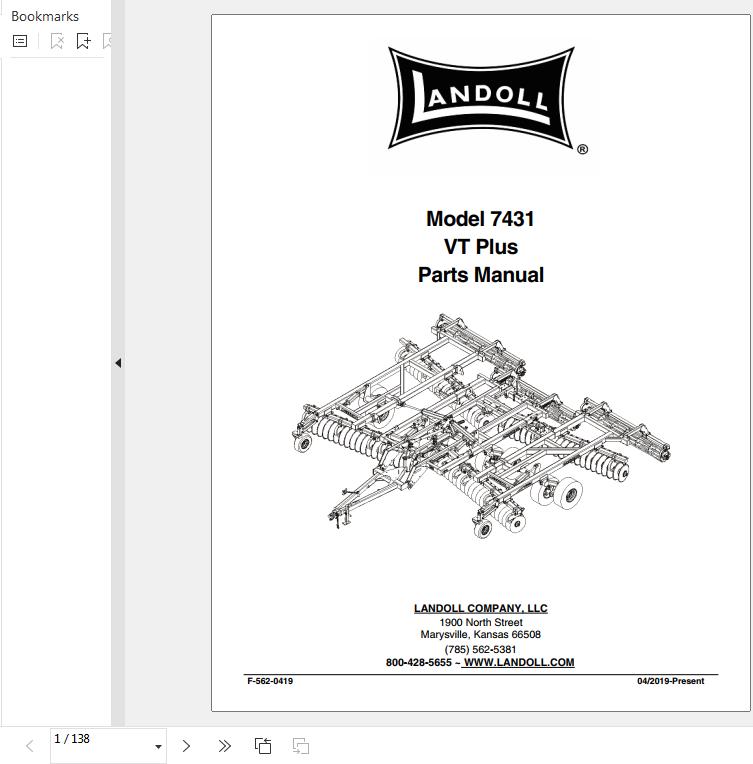 Landoll 7431 VT Plus Parts Manual F-562-0420
