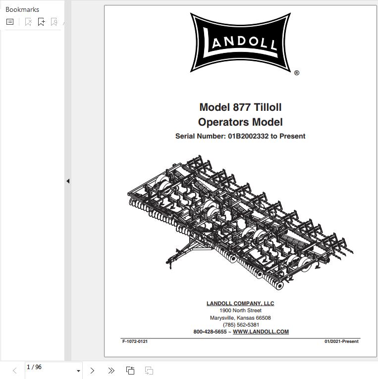 Landoll 877 Tilloll Operator's Manual F-1072-0121