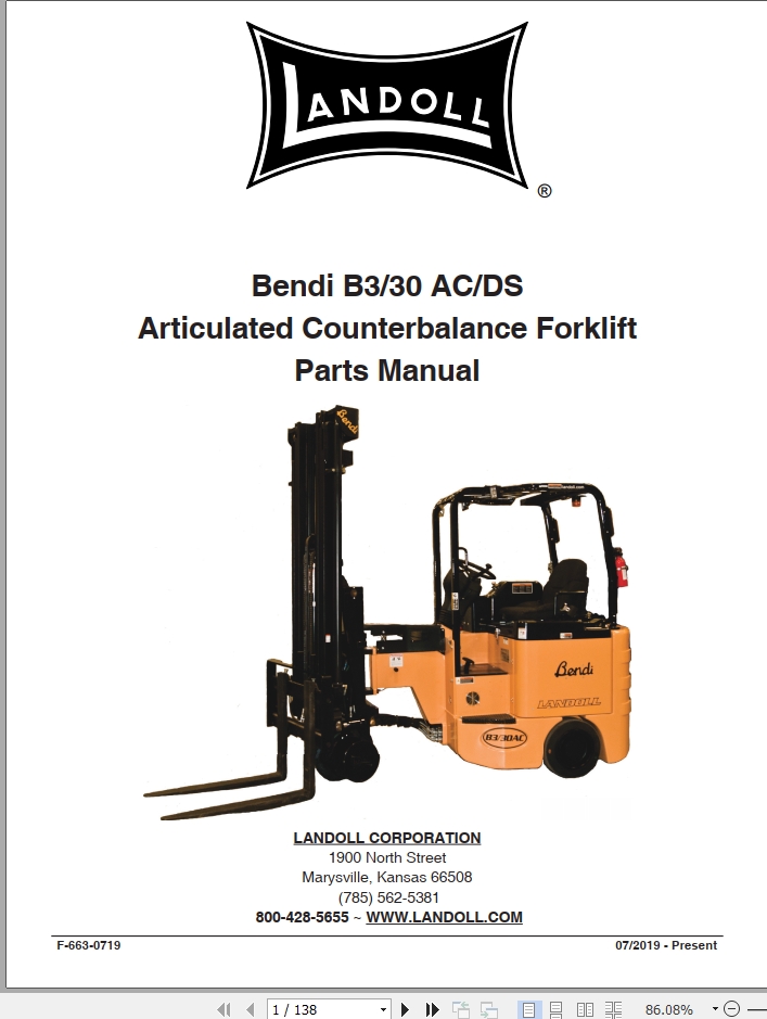 Landoll Bendi B3-30 AC DS Parts Manual F-663-0719