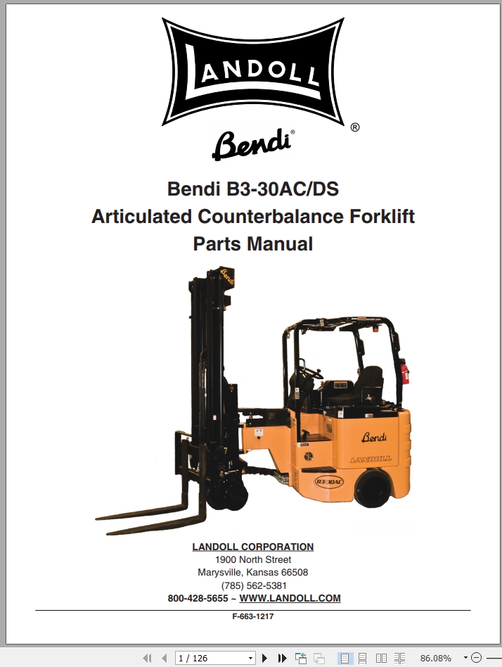 Landoll Bendi B3-30 AC DS Parts Manual F-663-1217