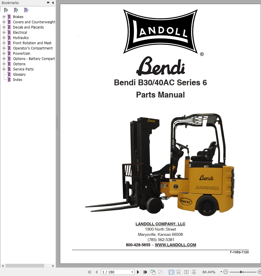 Landoll Bendi B30 B40 AC Series 6 Parts Manual F-1082-1120
