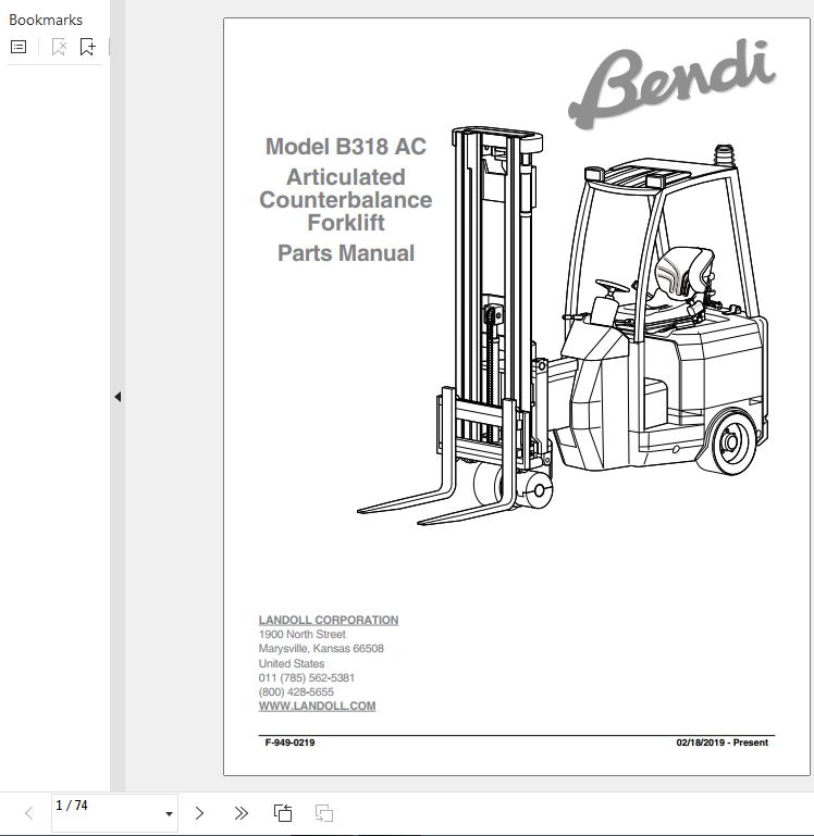 Landoll Bendi B318 AC Parts Manual F-949-0219