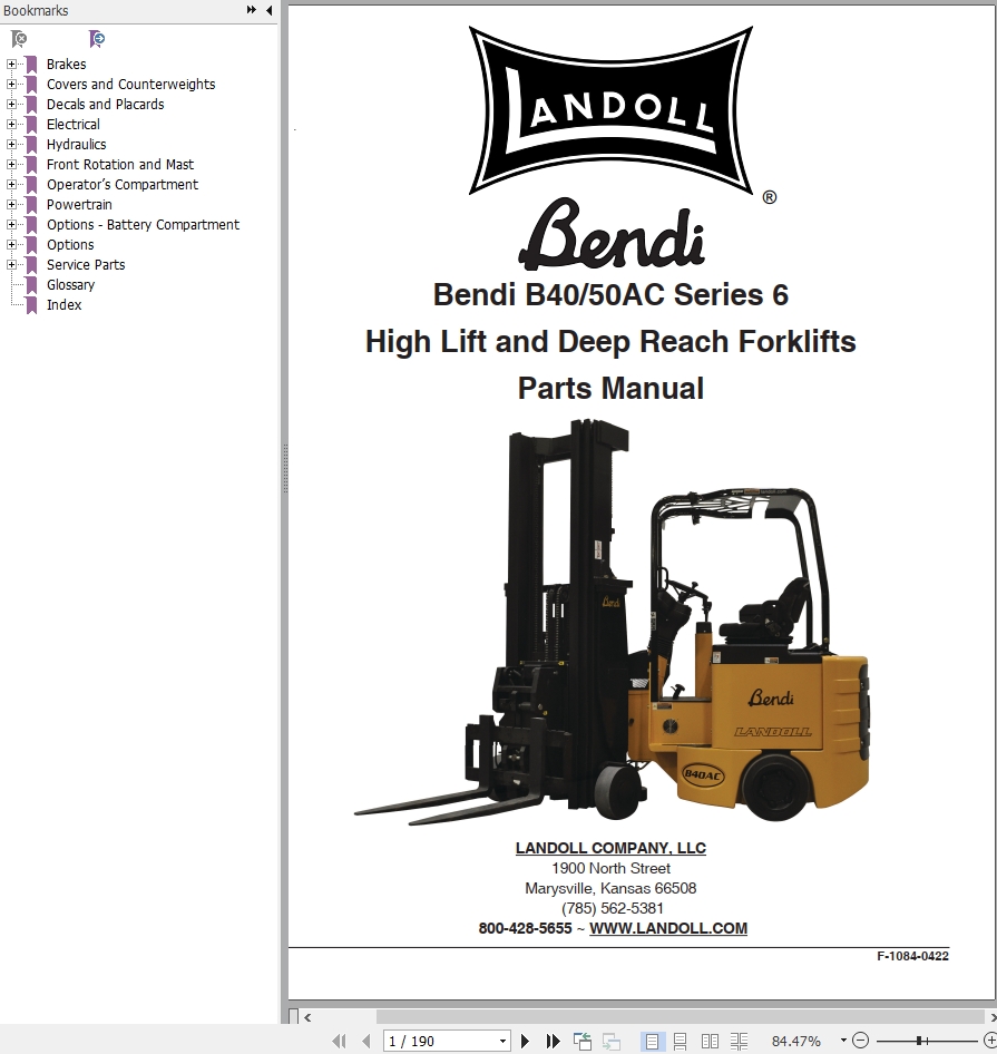 Landoll Bendi B40 B50 AC Series 6 Parts Manual F-1084-0422