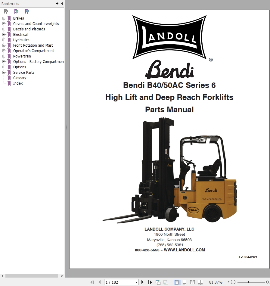 Landoll Bendi B40 B50 AC Series 6 Parts Manual F-1084-0921