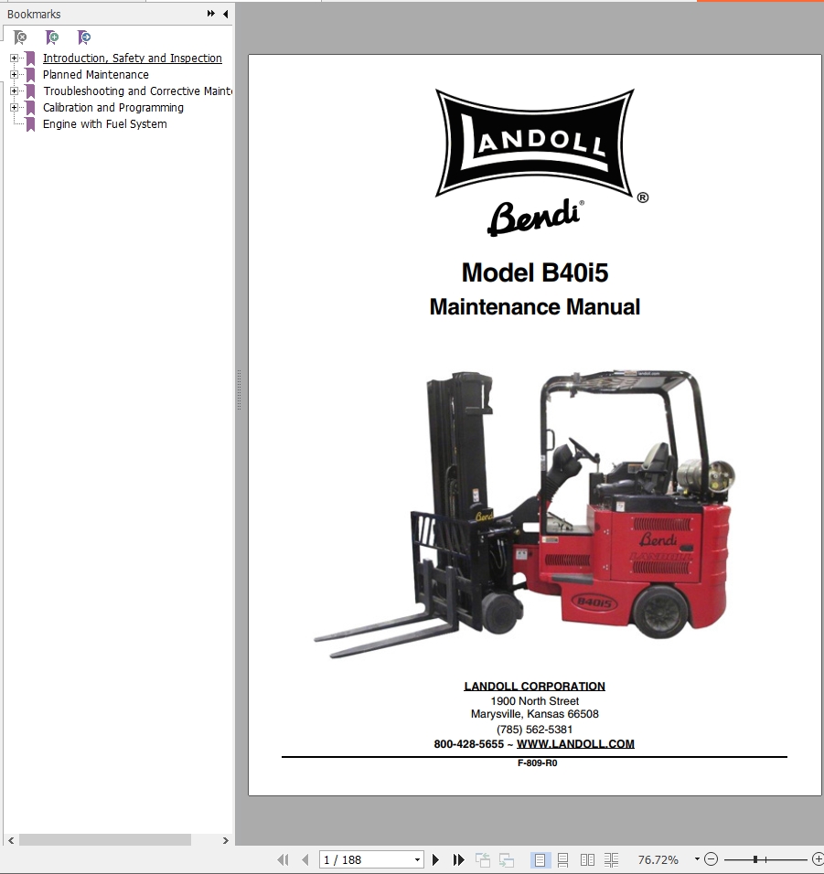 Landoll Bendi B40i5 Maintennance Manual F-809-R0