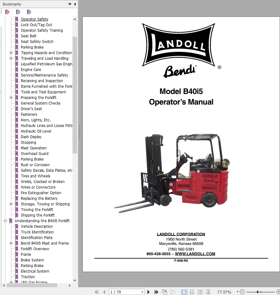 Landoll Bendi B40i5 Operators Manual F-808-R0