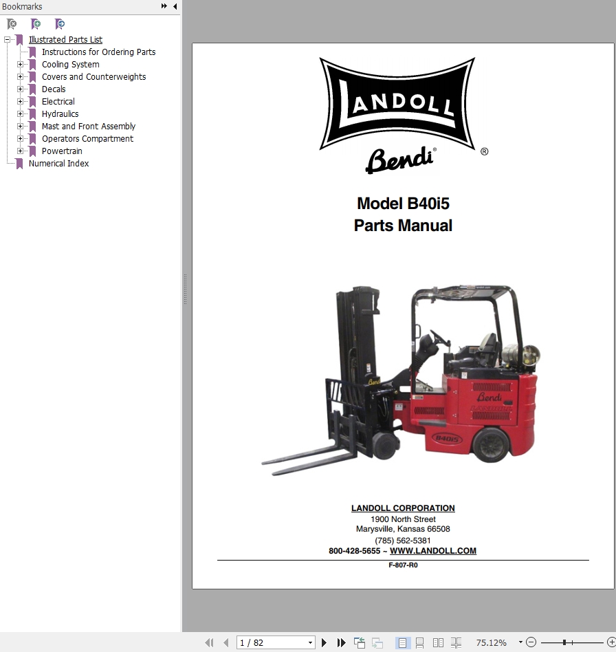 Landoll Bendi B40i5 Parts Manual F-807-R0