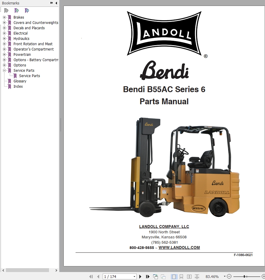 Landoll Bendi B55AC Series 6 Parts Manual F-1086-0621