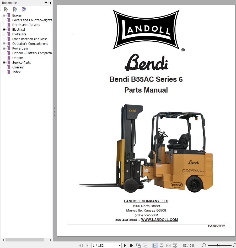 Landoll Bendi B55AC Series 6 Parts Manual F-1086-1222