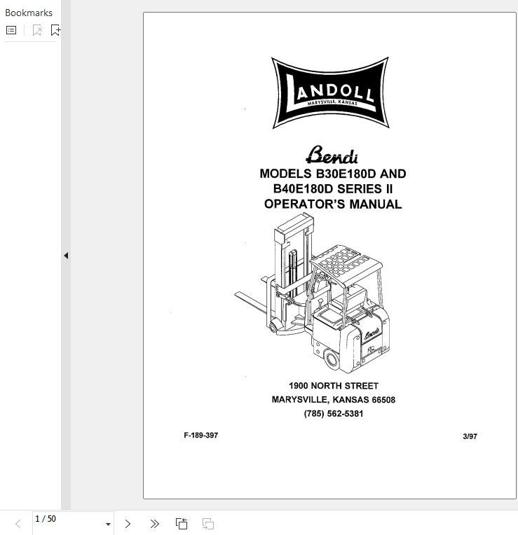 Landoll Bendi B30E180D And B40E180D Series II Operator's Manual F-189-397