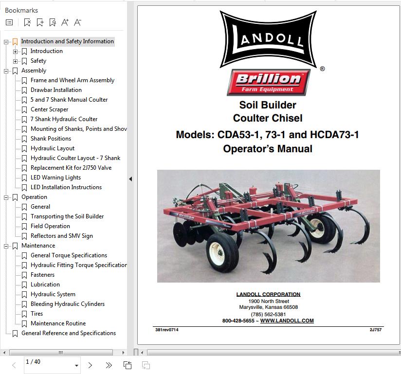 Landoll CDA53-1 73-1 And HCDA Soil Builder Coulter Chisel Operator’s Manual 2J757