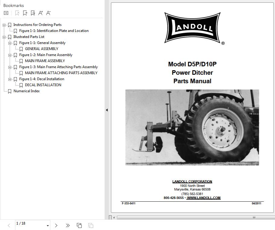 Landoll D5P D10P Power Ditcher Parts Manual F-353-0411