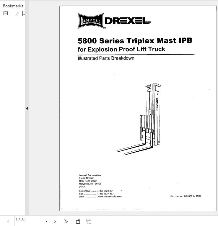 Landoll Drexel 5800 Series Triplex Mast IPB Parts Manual 1420370