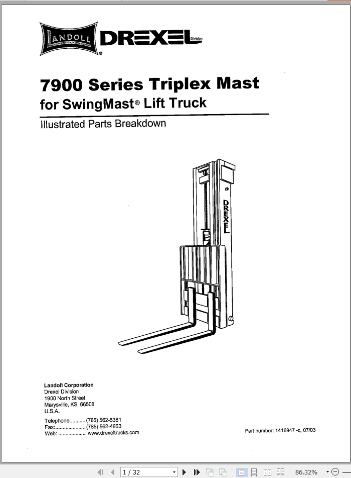 Landoll Drexel 7900 Series Triplex Mast Part List 1416947