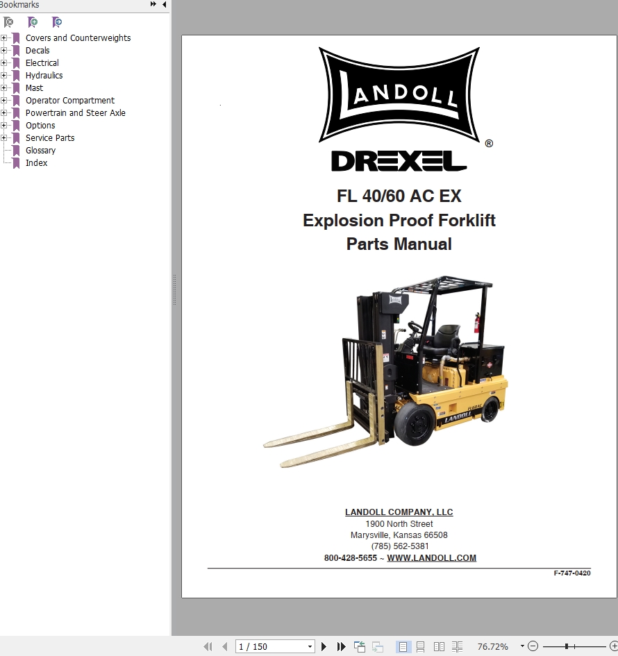The Bookmarks of Landoll Drexel FL 40 AC 60 AC EX Forklift Parts Manual: