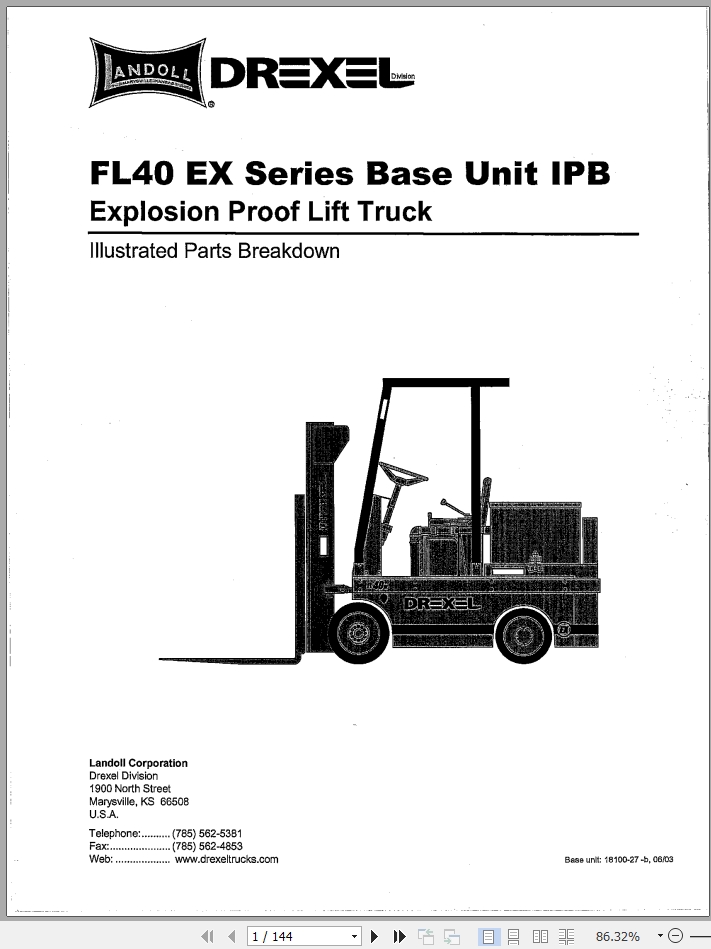 Landoll Drexel FL 40 EX Series Base IPB Parts Manual 18100-27